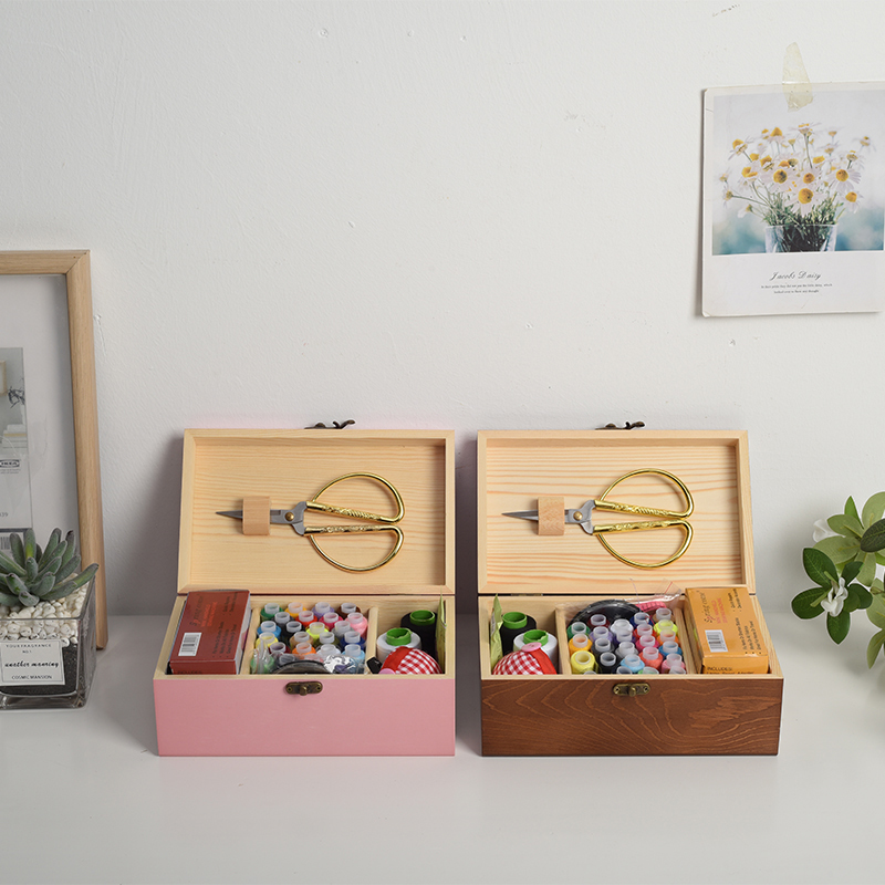 Retro household sewing box high-end set multi-functional solid wood large sewing toolbox wedding portable storage box