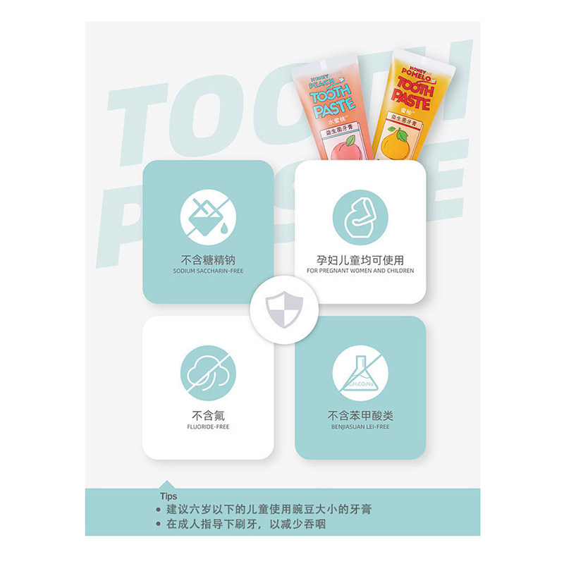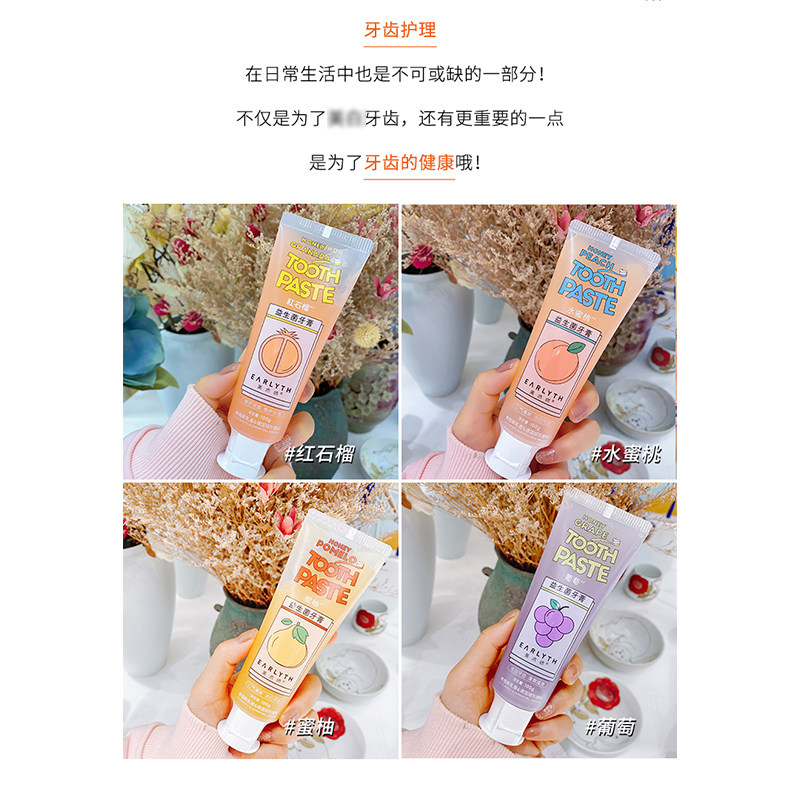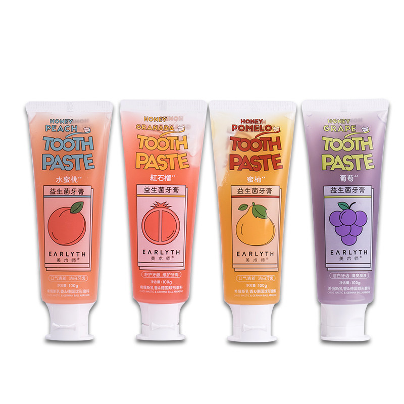 Peach probiotic toothpaste Toothbrush A pomelo probiotic toothpaste toothbrush A grape toothpaste toothbrush a pomegranate toothpaste toothbrush