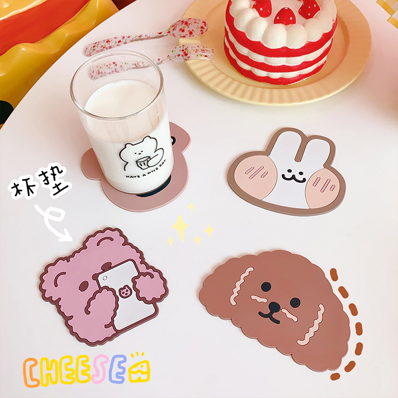Korean ins style cute bear soft silicone coaster creative non-slip heat insulation pad table mat girl heart water cup holder - Taobao
