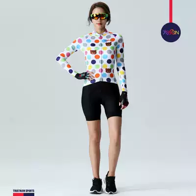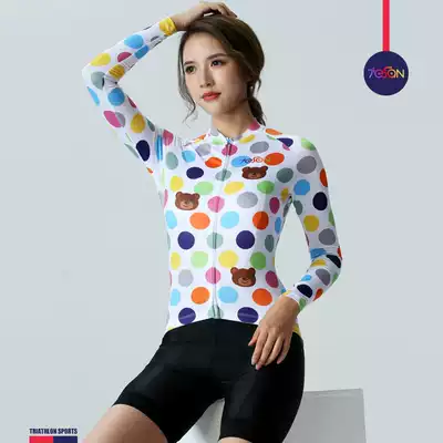 Summer women's road mountaineering bicycle long-sleeved sunscreen riding suit cute cartoon bear color breathable top