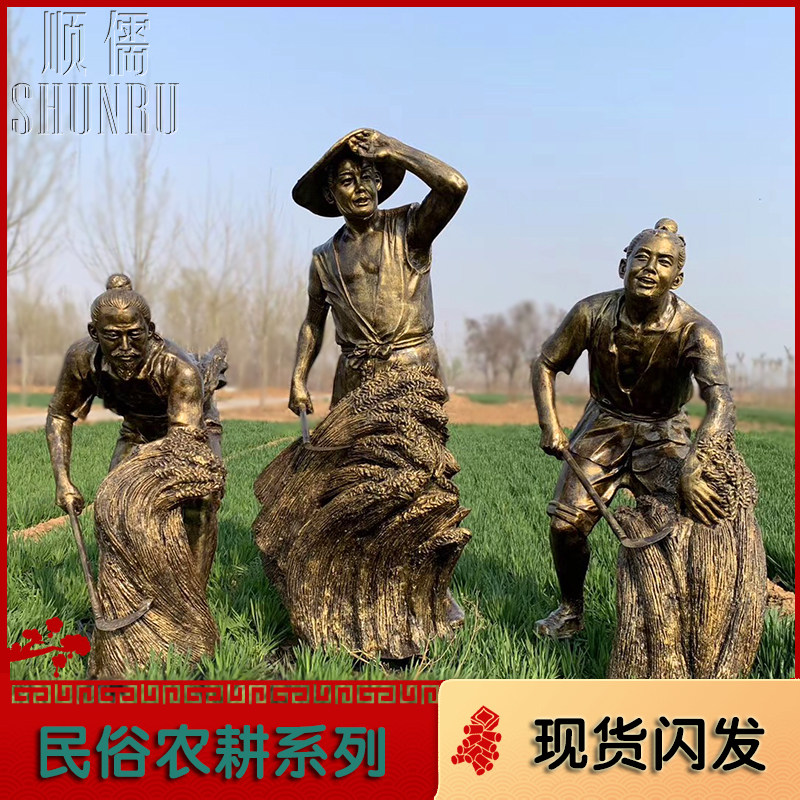 FRP farming figures sculpture folk products cut rice cow rapear harvesting wheat landscape commercial street