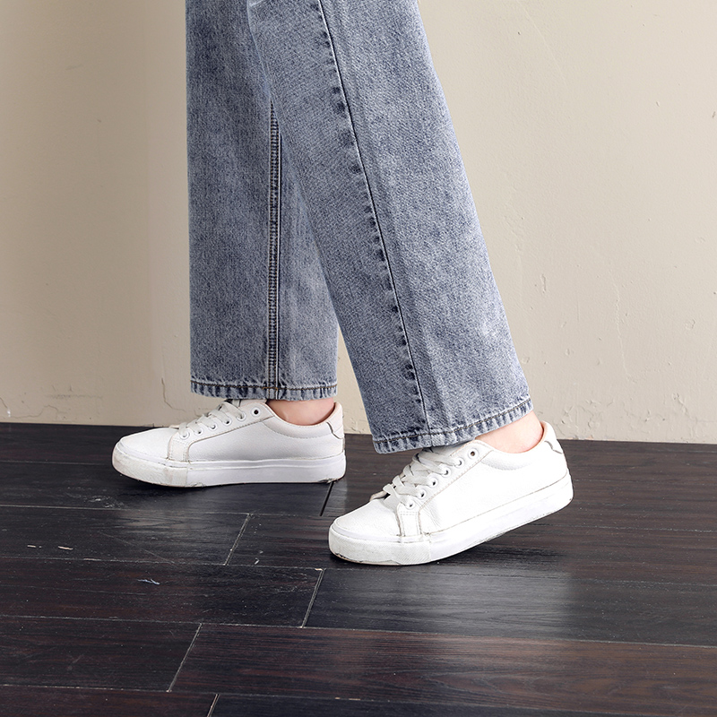 Spring Fall Denim Pants Woman High Waist Display Slim Loose Straight Cylinder Small Sub with high and elegant feeling small broadlegged pants children