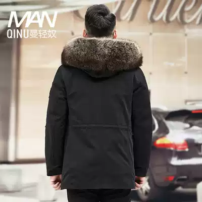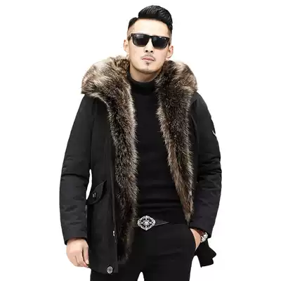 Winter Haining Pike clothing men's whole American raccoon hair liner medium long version hooded fur coat