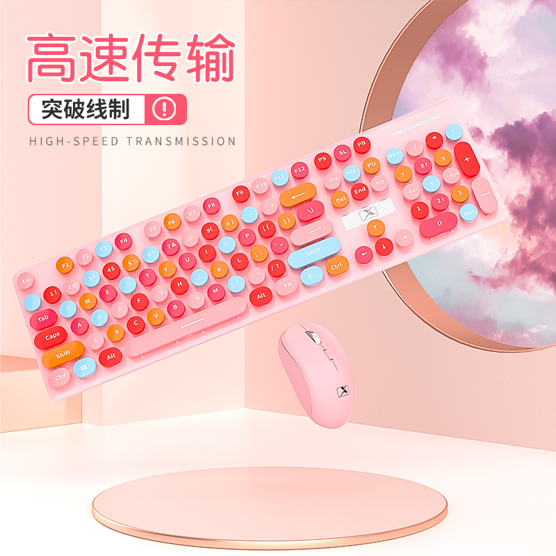 Forerunner manipulator keyboard wireless non-silent rechargeable mouse set girl cute lipstick cherry blossom girl heart macaron color laptop external office typing dedicated