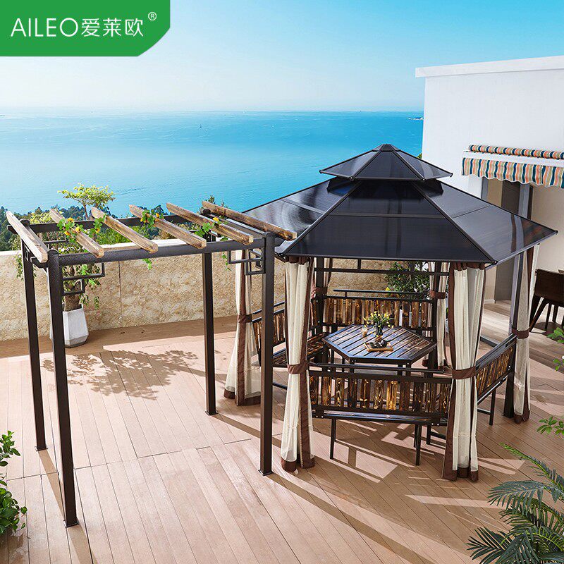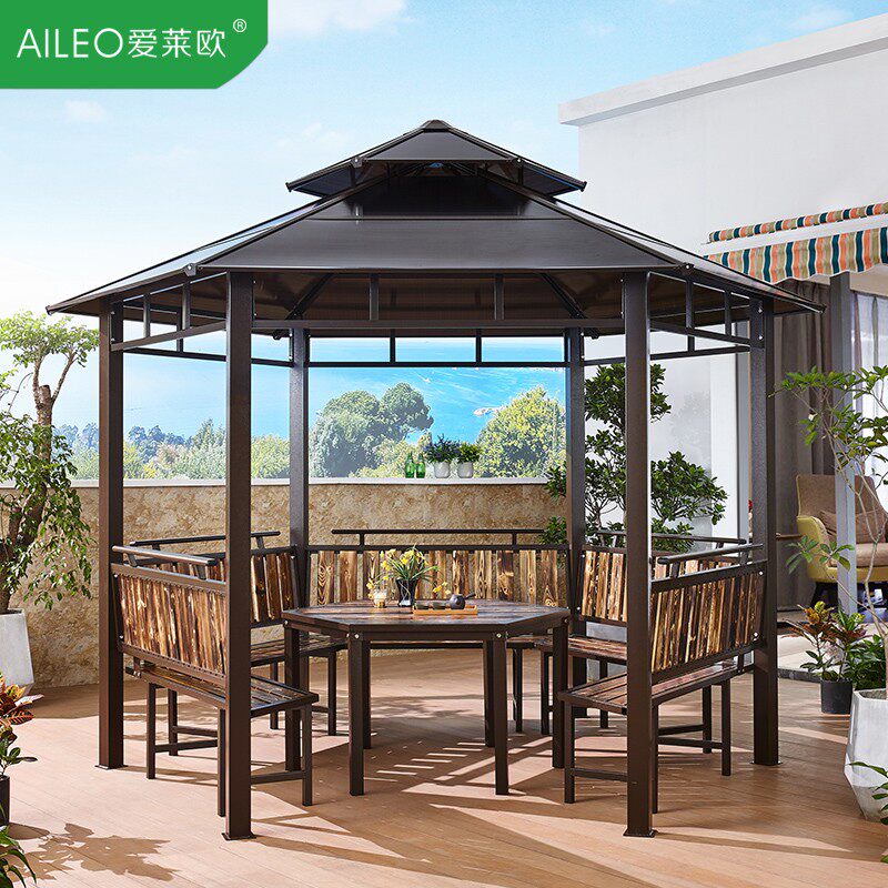 Farmer music outdoor hexagonal pavilion carbonized wood grape frame villa patio sunshine plate retro garden tent