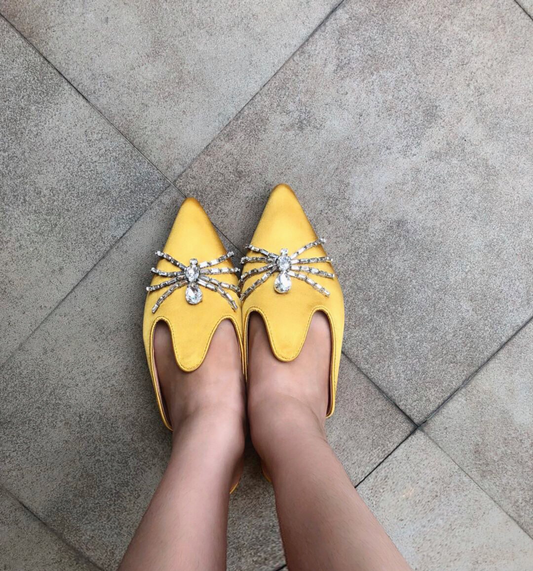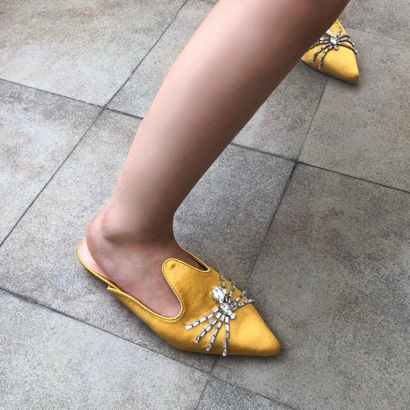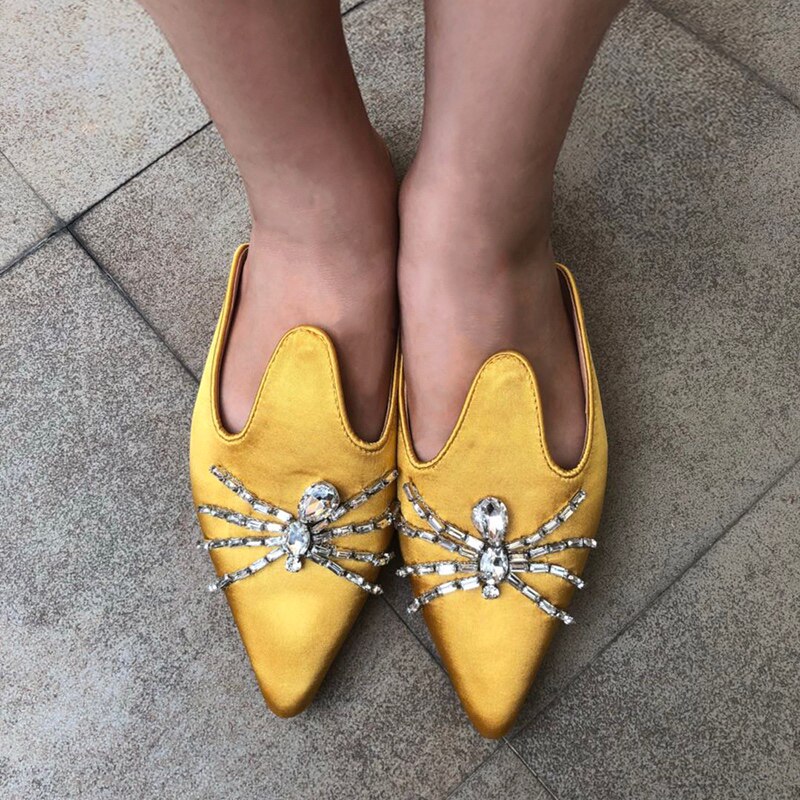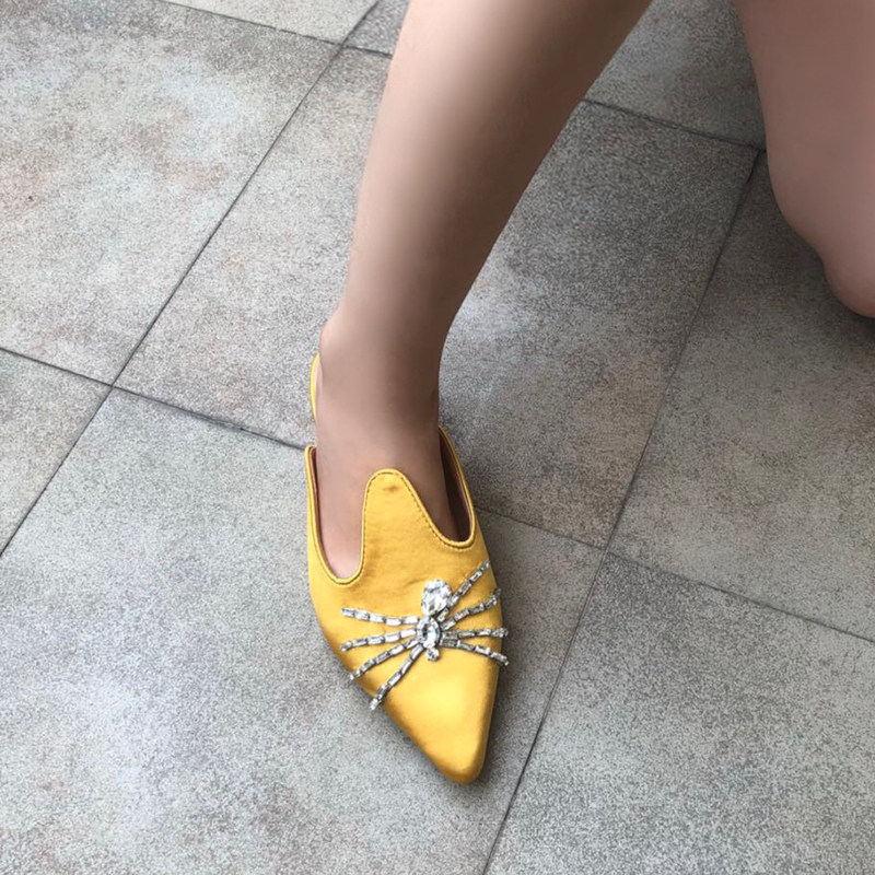 OMG This is also so beautiful with giant leanthin satin Thai shoes to stock with water drill pointed flat-bottomed slippers