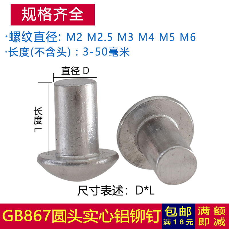 M2M2 5M3M4M5M6 Semi-round head aluminum rivet solid hand-hit screw screw*5x6x8x10x12