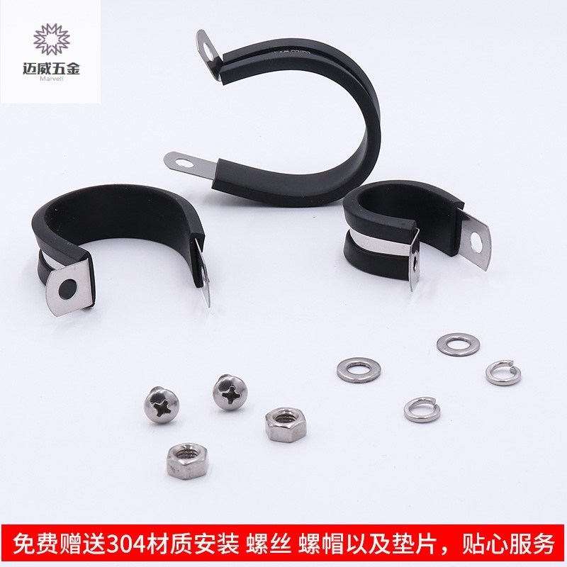 304 stainless steel with rubber strip throat hoop R-type fixed pipe clamp cable wire with rubber strip clamp rubber shock-absorbing hug