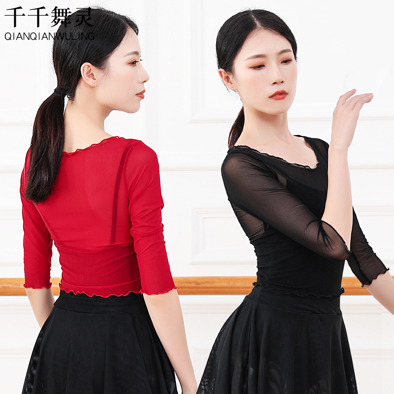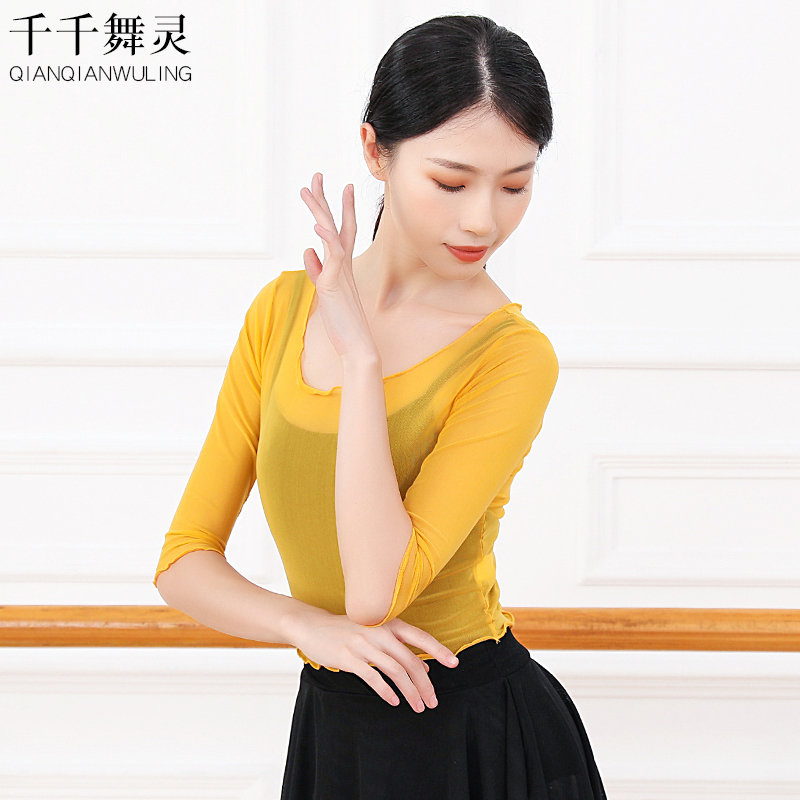 Dance practice clothes gauze adult female net gauze slim ballet body suit classical dance top body dance clothes