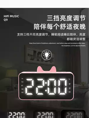 New Bluetooth alarm clock Cute cat ear speaker radio student mini high-quality mirror audio dual alarm clock