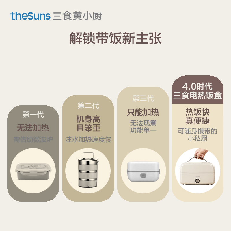 Three food yellow kitchen electric lunch box can be plugged into the heating lunch box insulation office workers cooking hot meals portable