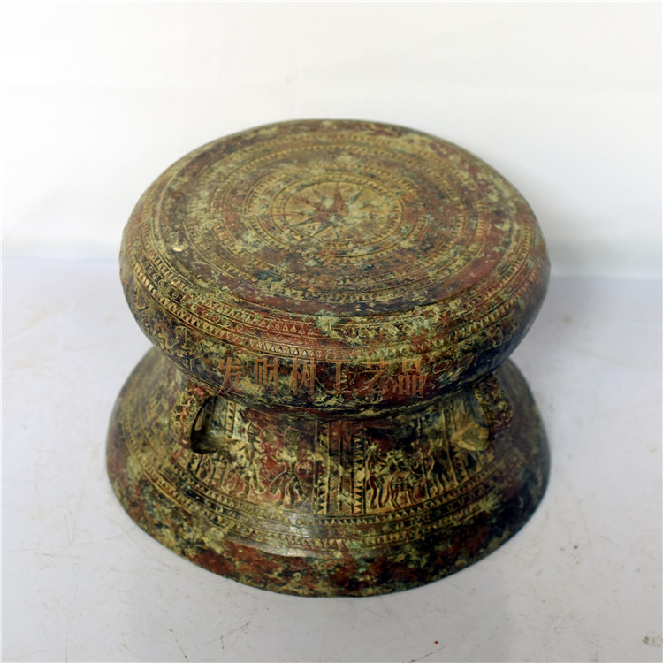 Bronze Drum Guangxi Special Decoration Chinese Bronze Craft Gift Decoration Office Living Room Decoration Collection Red Spot Green Embroidery