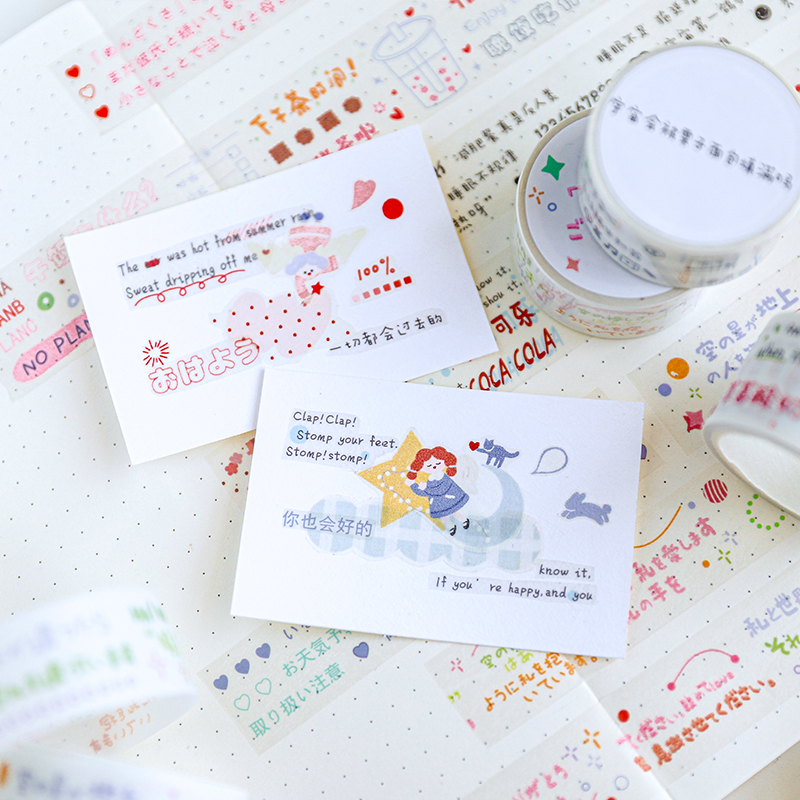 Primary text password series sulphuric acid paper adhesive tape hand ledger adhesive tape sweet girl collage round point sticker hand ledger material
