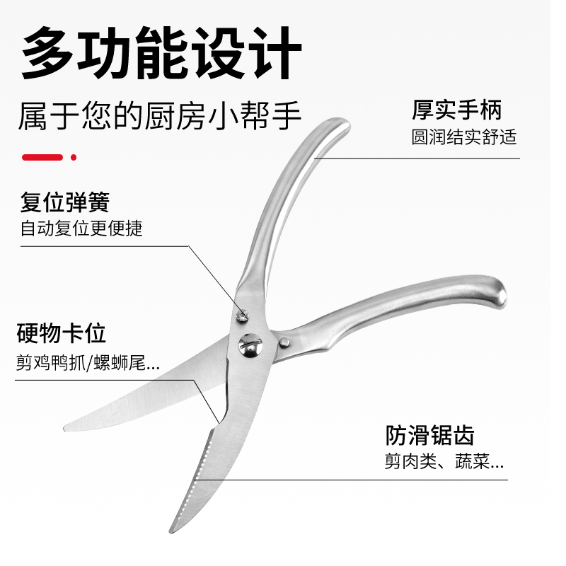 (Strong kitchen)Automatic rebound second generation all-steel chicken bone scissors Multi-function meat cutting stainless steel kitchen scissors
