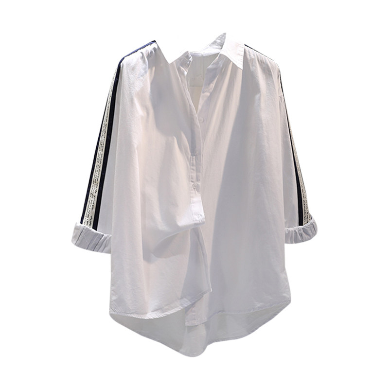 Hong Kong Tide Cards 2022 New Korean Version Striped Splicing Cotton Linen Shirts Women's Loose Casual Blouse Cardiovert Hooded Jacket