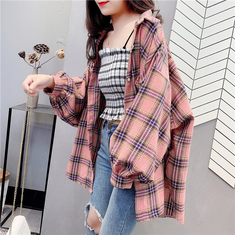 European Station Plaid Shirt Woman Design Sensation Outside the outside wearing 2022 new spring autumn winter long sleeves 100 hitch jacket blouse