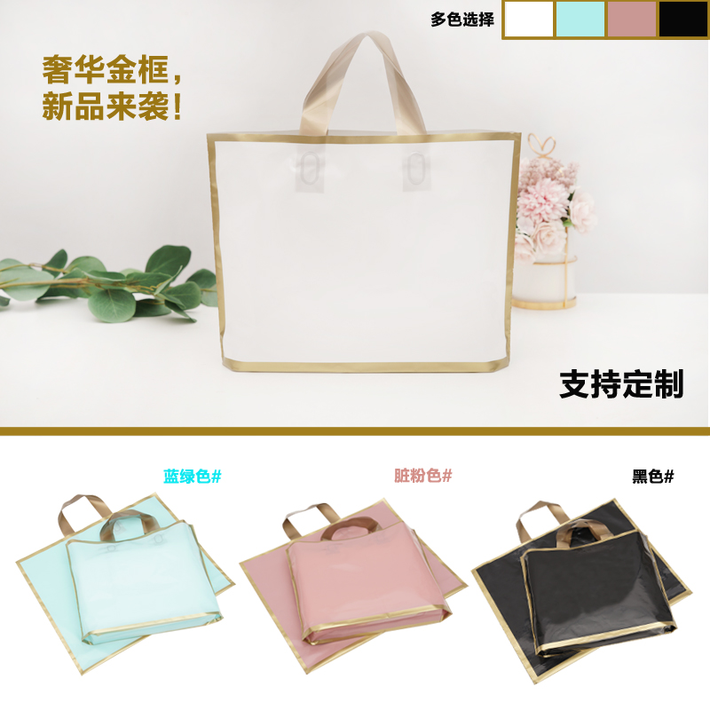 Clothes women's clothing store plastic handbag gold frame custom LOGO clothes bag advertising bag gift bag custom