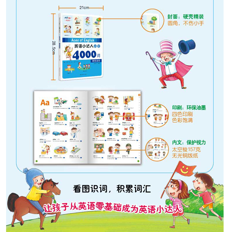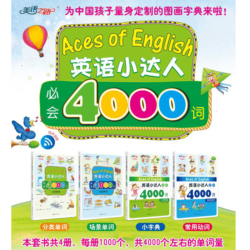 Little English master must know 4000 words 4 volumes children's English word dictionary Chinese-English bilingual little master point reading pen