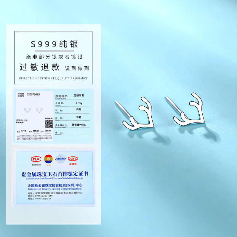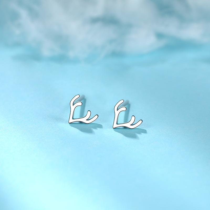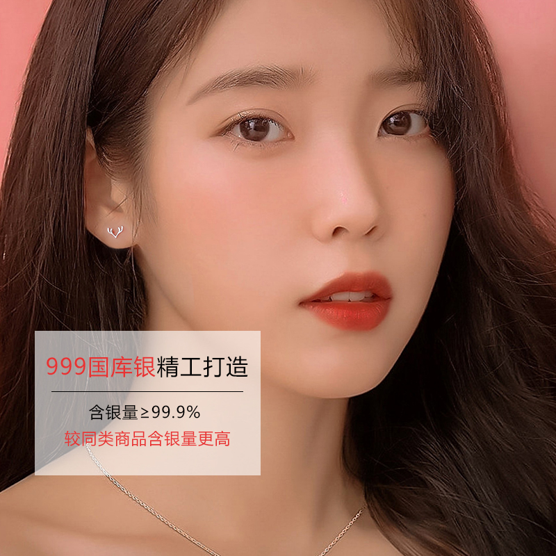 (Meiman) 999 sterling silver earrings women's hypoallergenic simple and small temperament antler earrings small fresh earrings