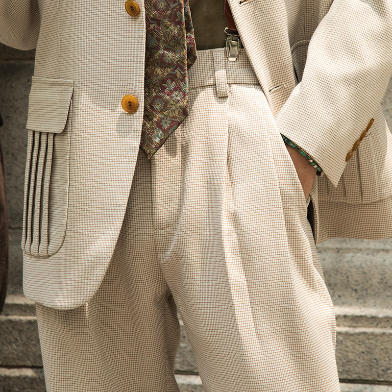 SOARIN INDEPENDENT RETRO PLAID STRAIGHT Pants Male Inron Business gentleman Leisure loose wide leg suit trousers
