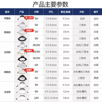 5W three-color (all aluminum silver) drilling 6 5-9 0cm alloy 12W (default white light) drilling 10 5-13 0cm 6W White Light (luxury die-cast aluminum White