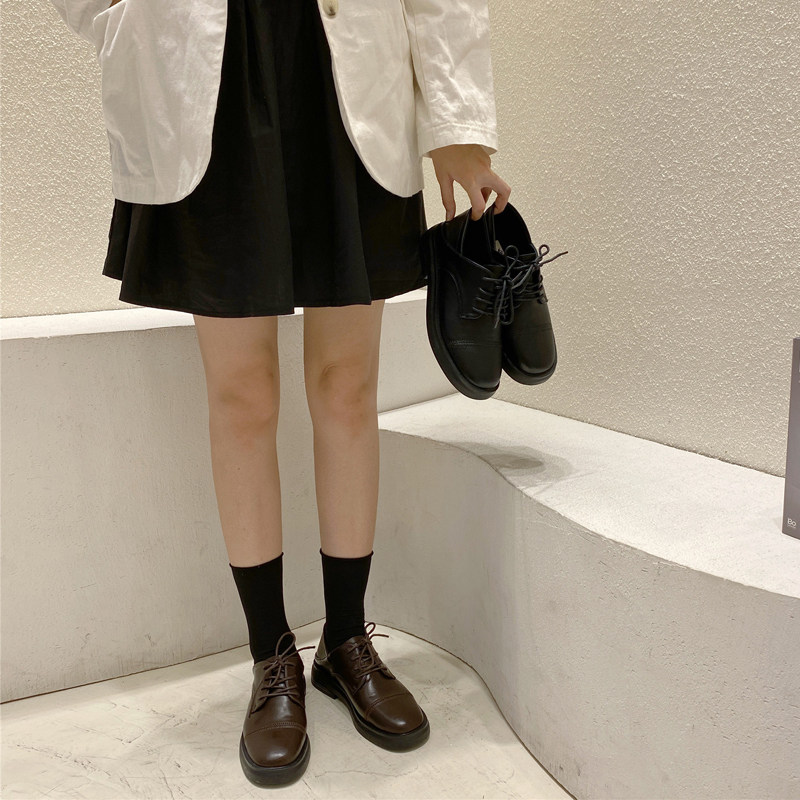 Lace-up soft leather shoes women's British style 2022 spring new all-match student retro fairy style flat shoes women