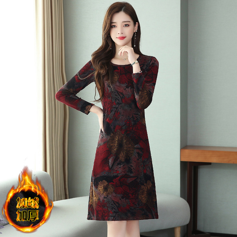 Winter heating clothes women's thick and velvet outer wear large size mid-length top middle-aged mother high-end bottoming skirt
