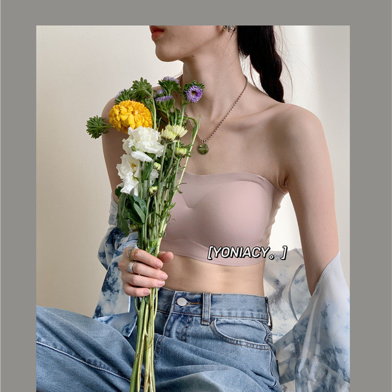 Strapless bra gathered non-slip thin underwear beauty back No rims summer comfort No trace invisible bra bandeau
