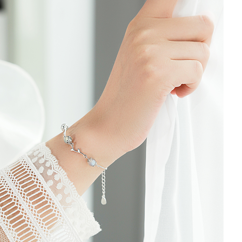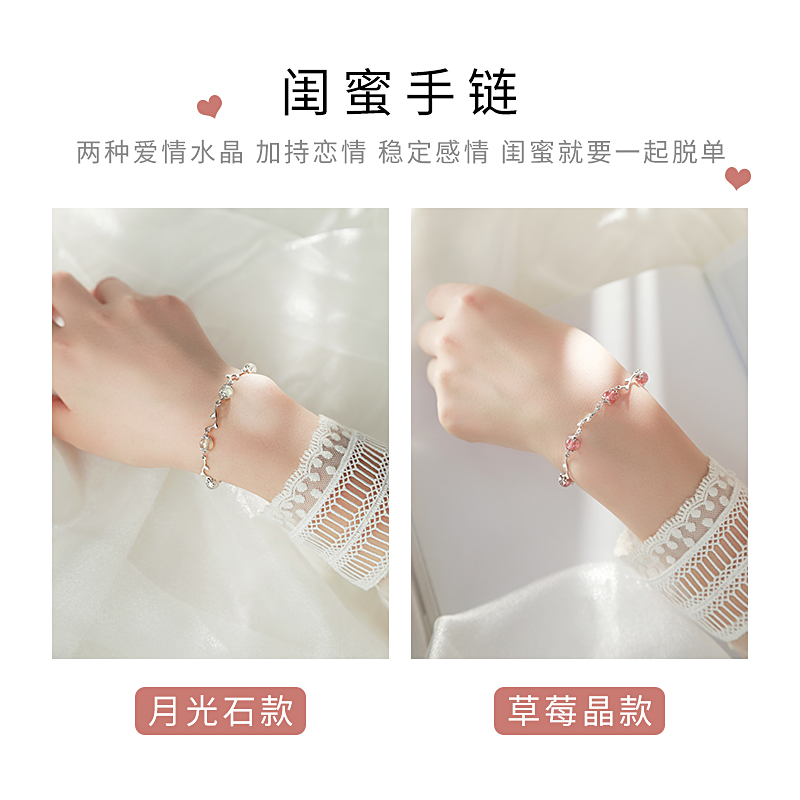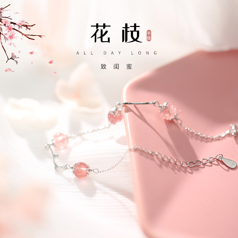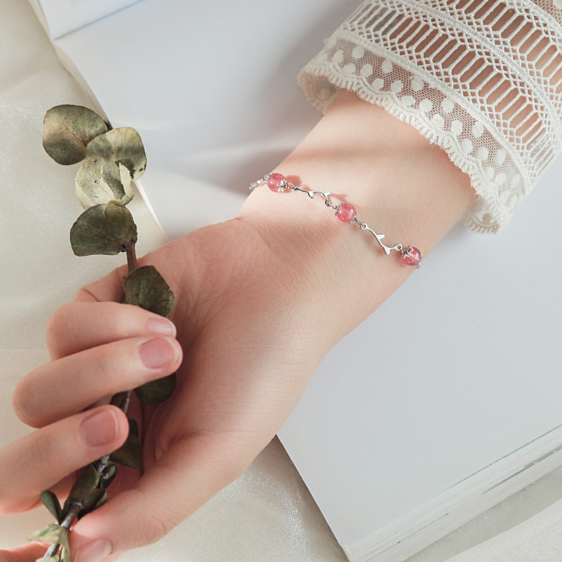 Peach Blossom Hand Condensed Pure Silver Female Brief Student Mori Department Fresh Art Strawberry Crystal Small Crowdsourced Original Design Engrave bestie