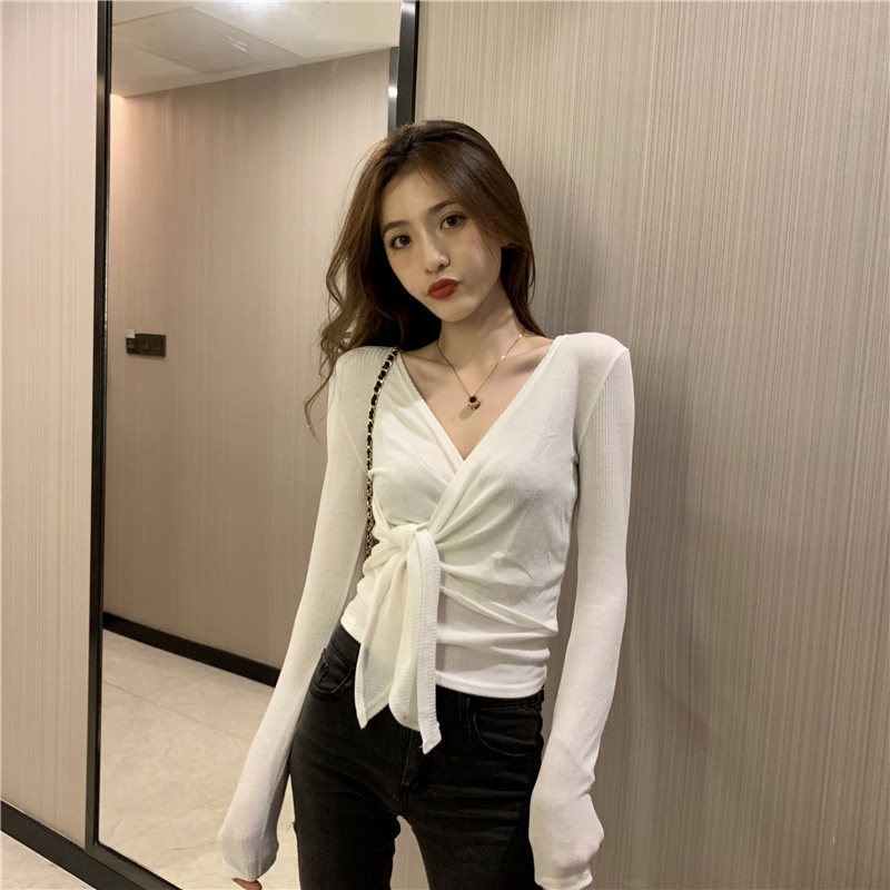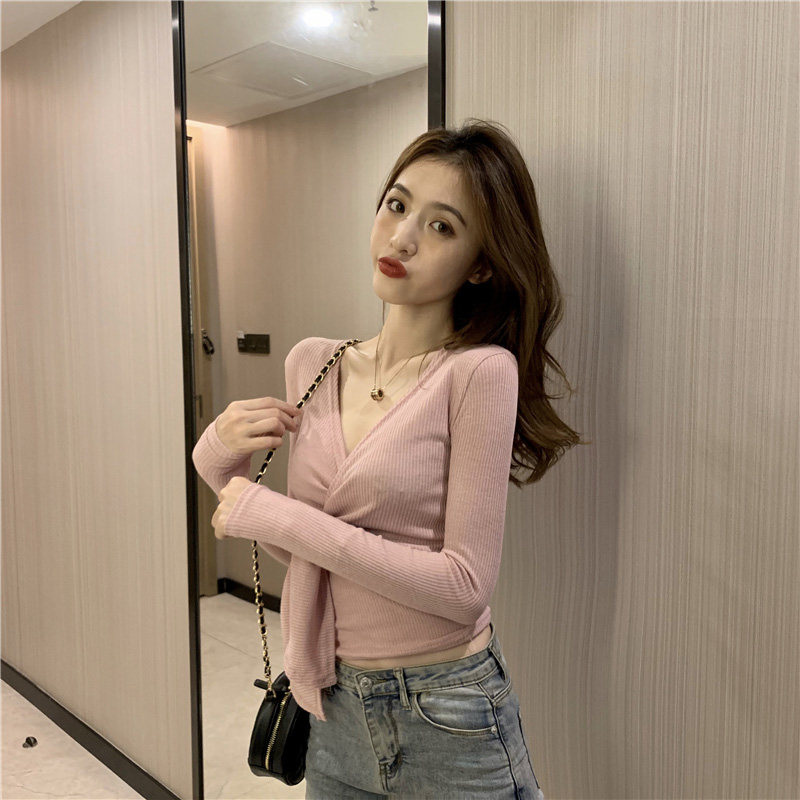 Crossover V TAKE CARE Coat Design Sensation Undershirt Woman Summer 2022 New Sexy Tights Long Sleeve T-shirt