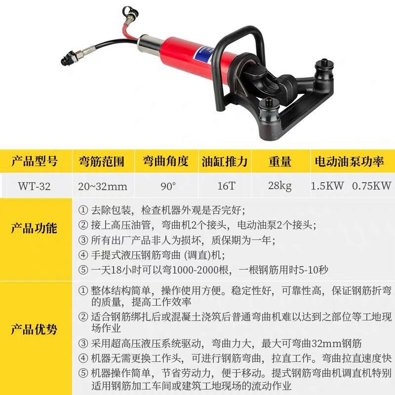 Two-piece steel bar bending machine WT-32 electric WT-32 with double circuit 0 75 solenoid valve Electric WT-32 with double circuit 1 5 solenoid valve