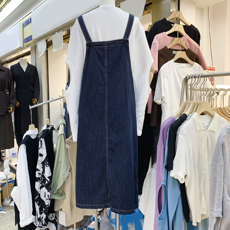Dongdamen women's clothing 2022 early autumn new Korean version fashion loose all-match open fork baby bag denim dress long skirt