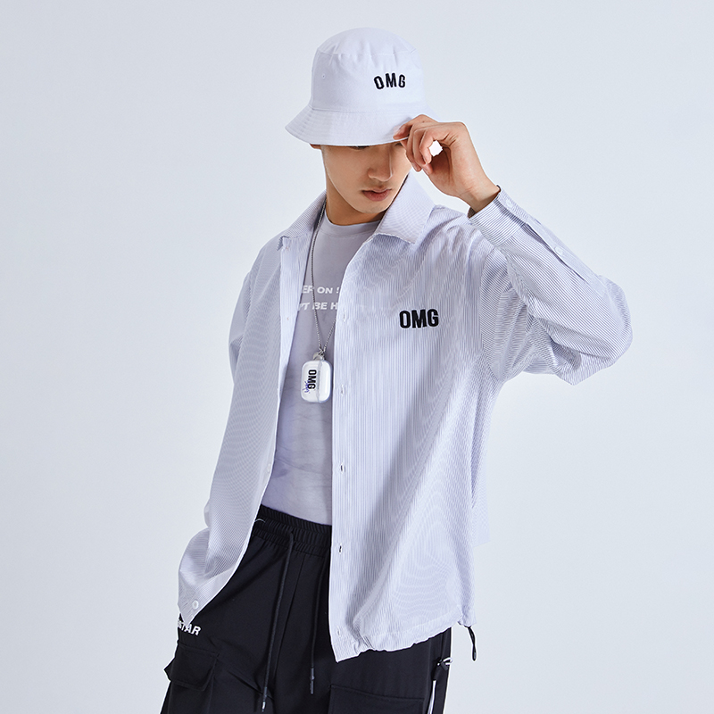 OMG Tide Card Original Design Adjustable Embroidered Striped Long Sleeve Shirt Men Thin Spring Autumn Sports Jacket