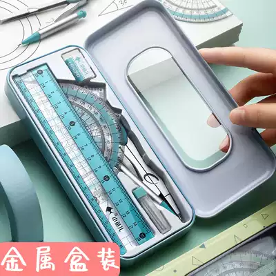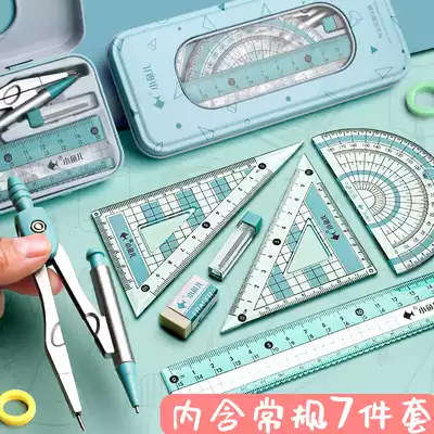Compass ruler set cute student stationery ruler triangle plate primary school ruler students use multi-functional junior high school students drawing drawing tool metal ruler learning drawing