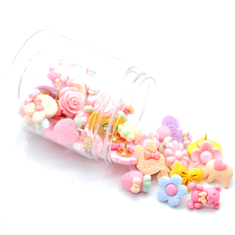 50pcs boxed resin frosted color wood clip press nail I-shaped nail Creative cork pushpin can be nailed to the wall wall nail