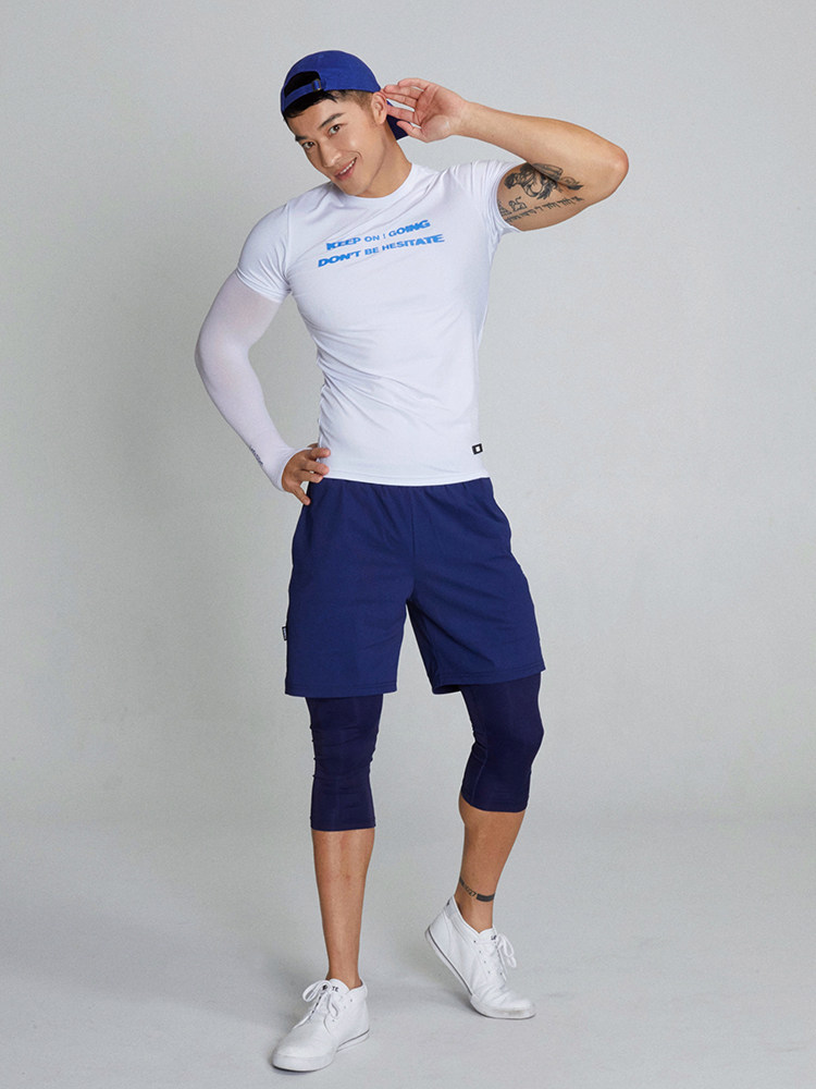 OMG Tide Card Men's Fake Two Sports Shorts Running Training Breathable Speed Dry Elastic Fitness Shorts Seven-minute Pants