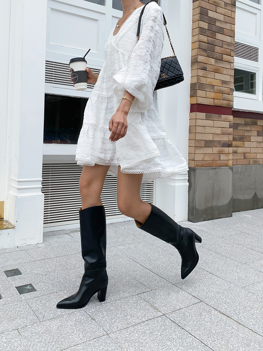 Gross Cat GS Original Long Cylinder Boot Female Autumn Winter New Brief Calf Leather Genuine Leather High Heel With A Foot Pedal High Drum Boot