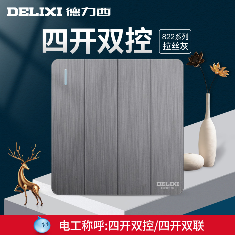 Deli West Grey Four Open Double Cut Home Concealed Wall Switch 86 Type Four 4 Double Lianz Electric Light Panel