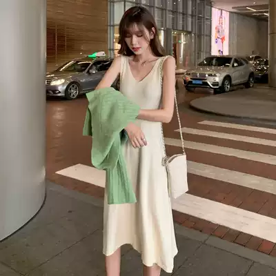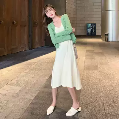 Pregnant women autumn dress suit breastfeeding out fashion autumn and winter Korean knitted cardigan vest long skirt two-piece set