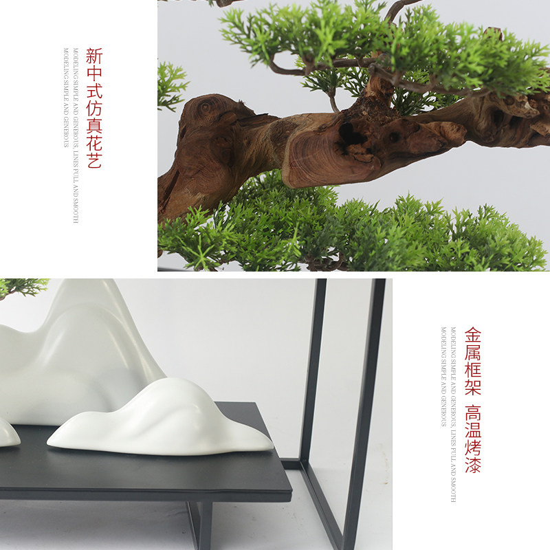 New Chinese emulated welcome guest pine iron art frame swing piece natural cliff cypress branches dry green planting hotel clubhouse soft decorations