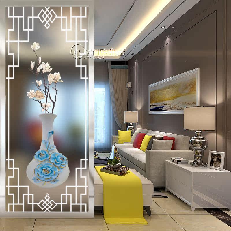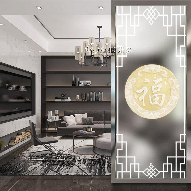 Customize modern minimalist art glass partition living room bedroom screen entry into the family's background frosted light transmission home