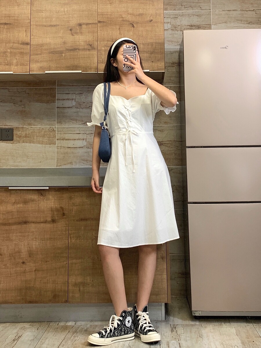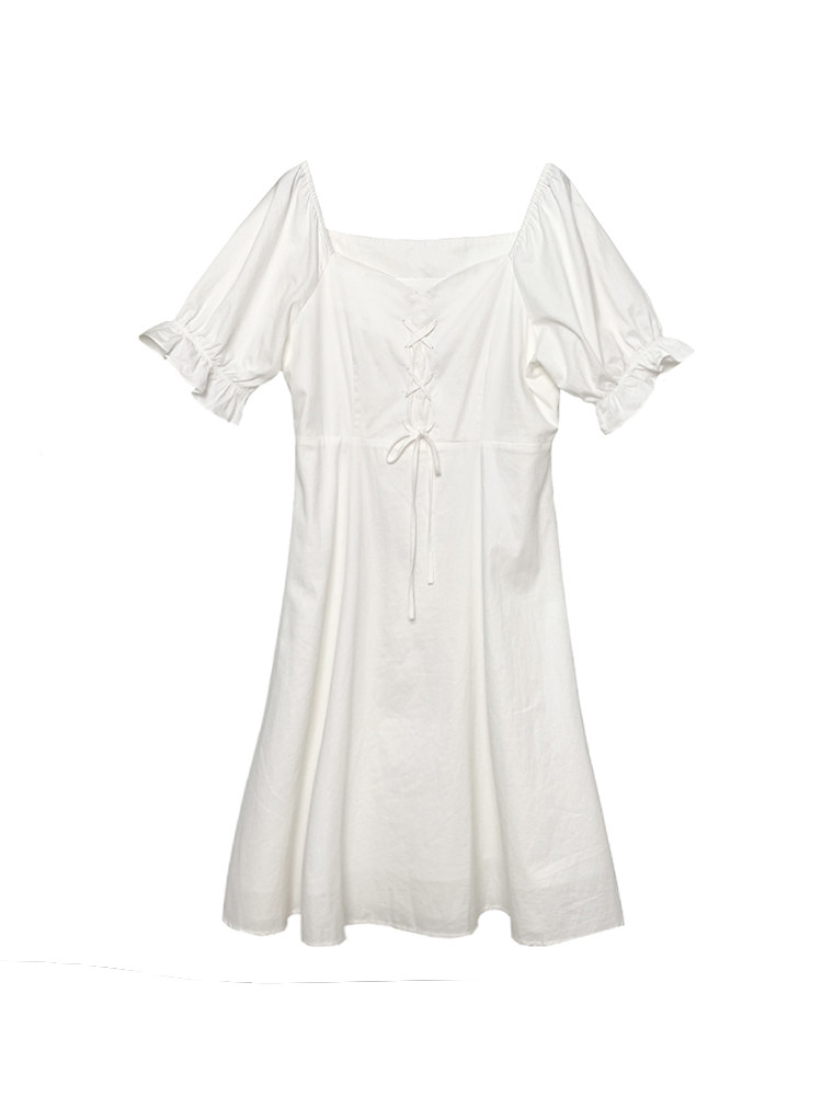 Julu 2021 Spring and Summer Slightly Fat mm White Dress Temperament Slim Waist Slimming One-shoulder Strap Design Sense