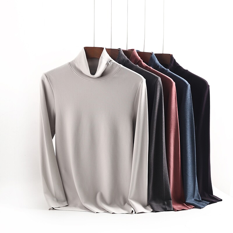 Men's seamless velvet mid-turtleneck heating clothes thick plus velvet bottoming shirt wear double-sided brushed autumn and winter constant temperature