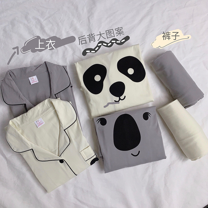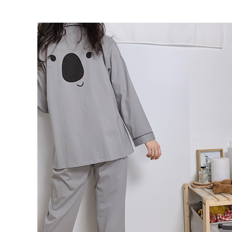 Gray koala couple in two pieces of pajamas lady sleeve cotton thin spring and autumn students cute Han Edition