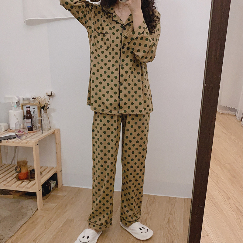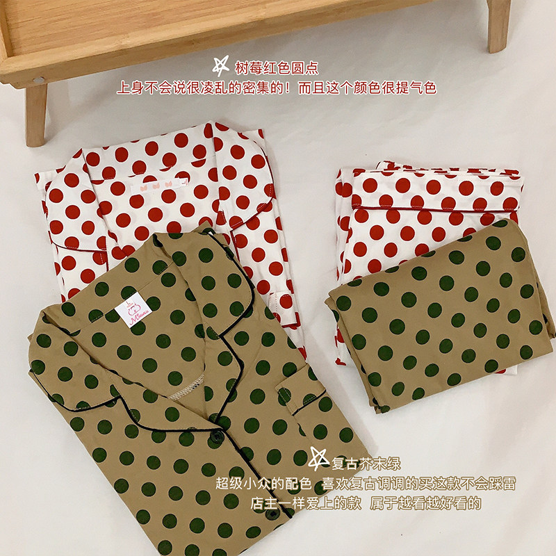 Hong Kong flavor retro niche pajamas female cotton ins fashion wave point suit Korean couple long-sleeved thin section spring and autumn