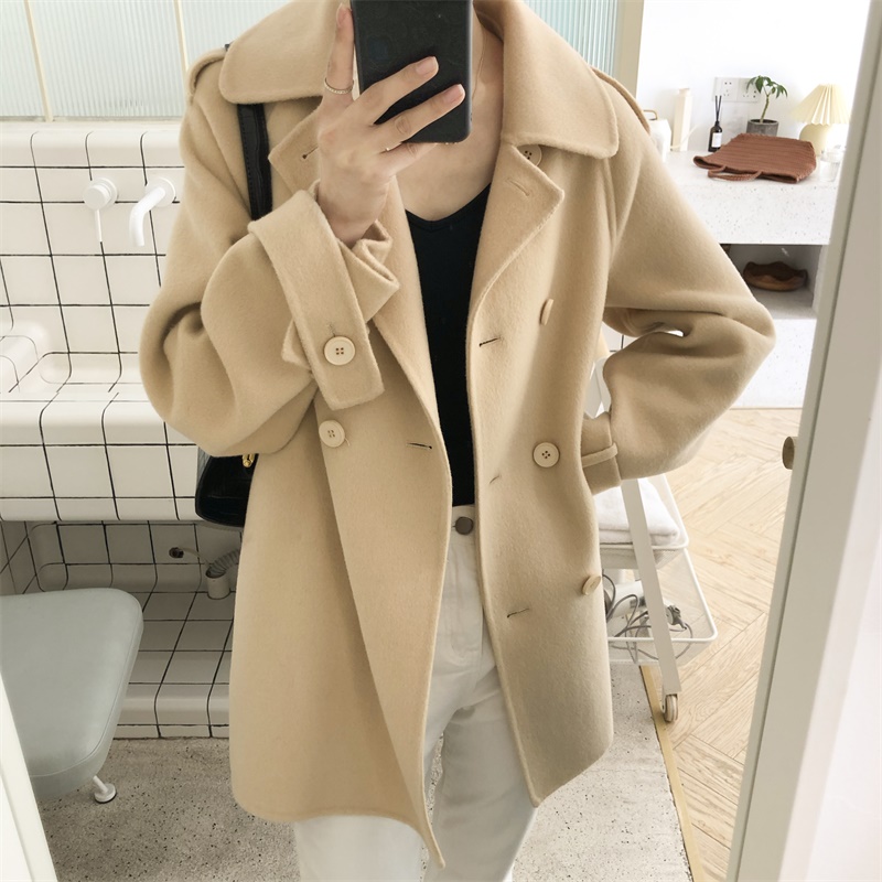 Double face cashmere big coat woman short and small sub 2021 new Korean version loose with slim double-row buttoned fur coat
