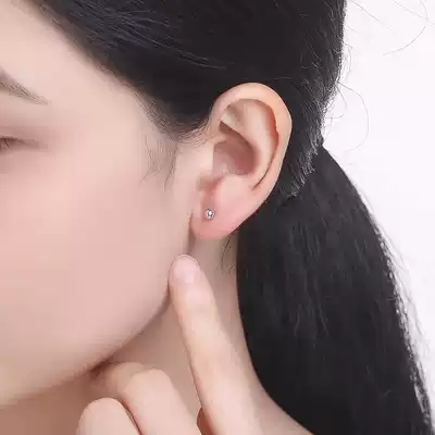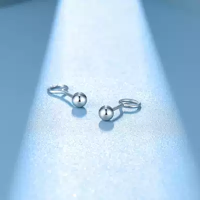 Lao Fengxiang cloud PT950 platinum ear needle female 18k platinum ear needle round beads curved hook earrings simple to send girlfriend best friend