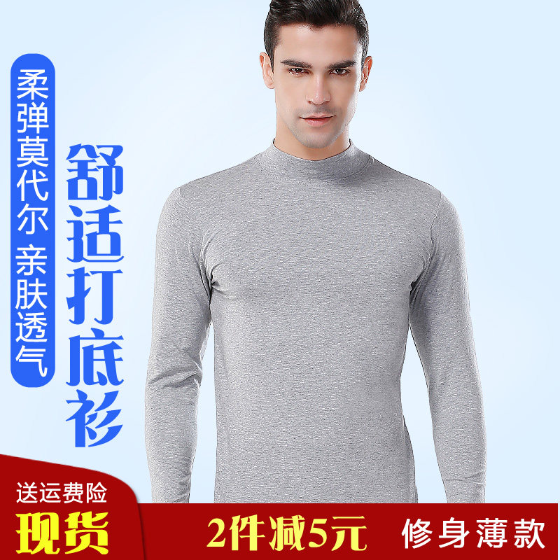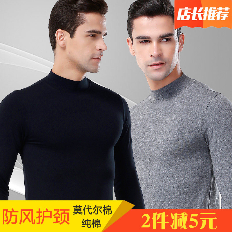 Autumn-winter men's half-height collars undershirt pure cotton autumn clothes blouses in aged warm underwear Modale thin section Long sleeves-Taobao