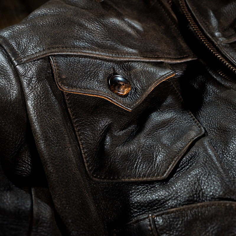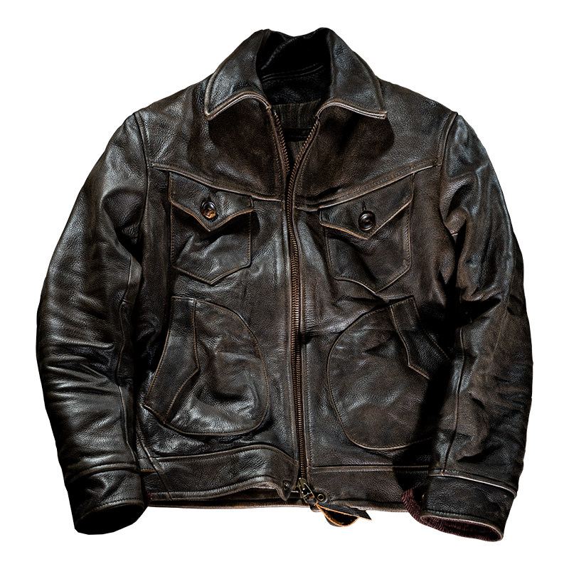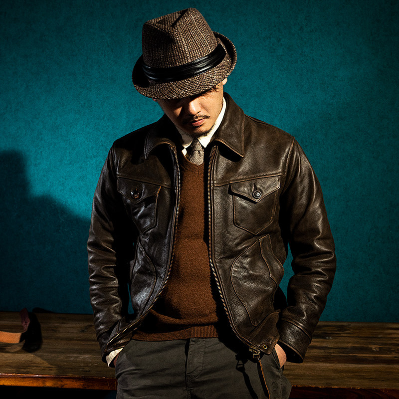 Mochen fur coat western farmer frosted to make old head layer pure cow leather turnover locomotive brown leather jacket jacket