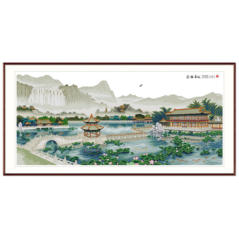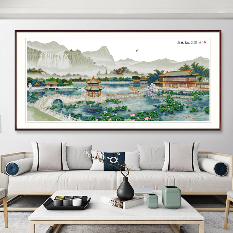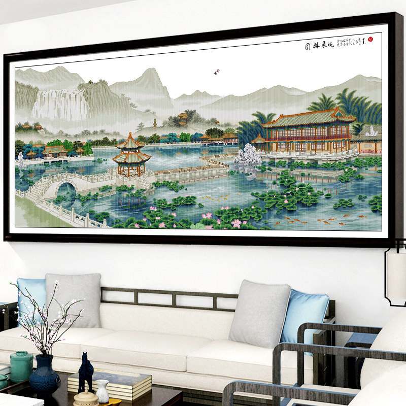 Cross embroidered 2022 new line embroidered large living room home atmosphere country painting landscape minimalist modern hand self-embroidered